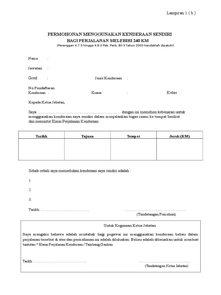 Borang Menggunakan Kenderaan Sendiri 240 Km Pdf