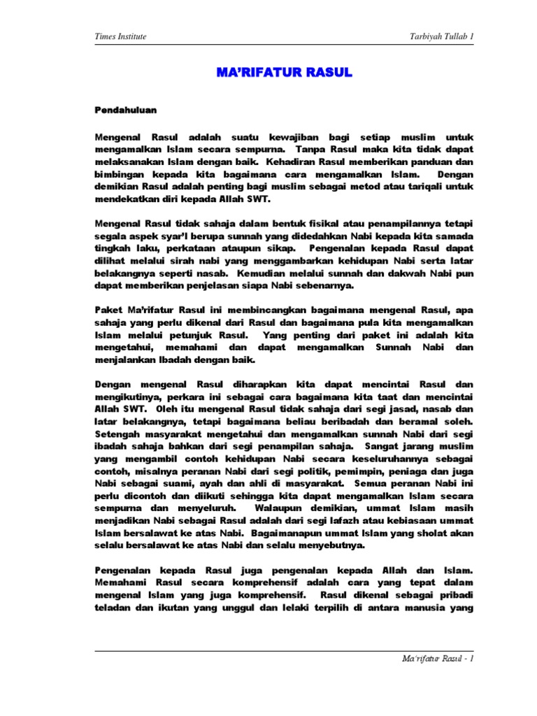 001 Makrifatur Rasulullah S A W Mtr Tarbiyah Pdf